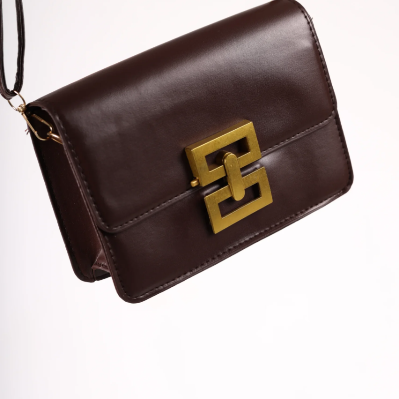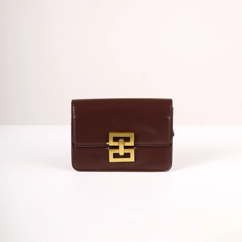 U toploj braon nijansi i dimenzijama 19x12x5,5 cm, ova torbica kombinuje klasičan dizajn sa sofisticiranim detaljima. Izrađena od čvrstog poliuretana, zadržava svoj oblik i deluje otmeno u svakoj prilici – bilo da je nosite uz poslovnu garderobu, večernju haljinu ili ležernu kombinaciju.